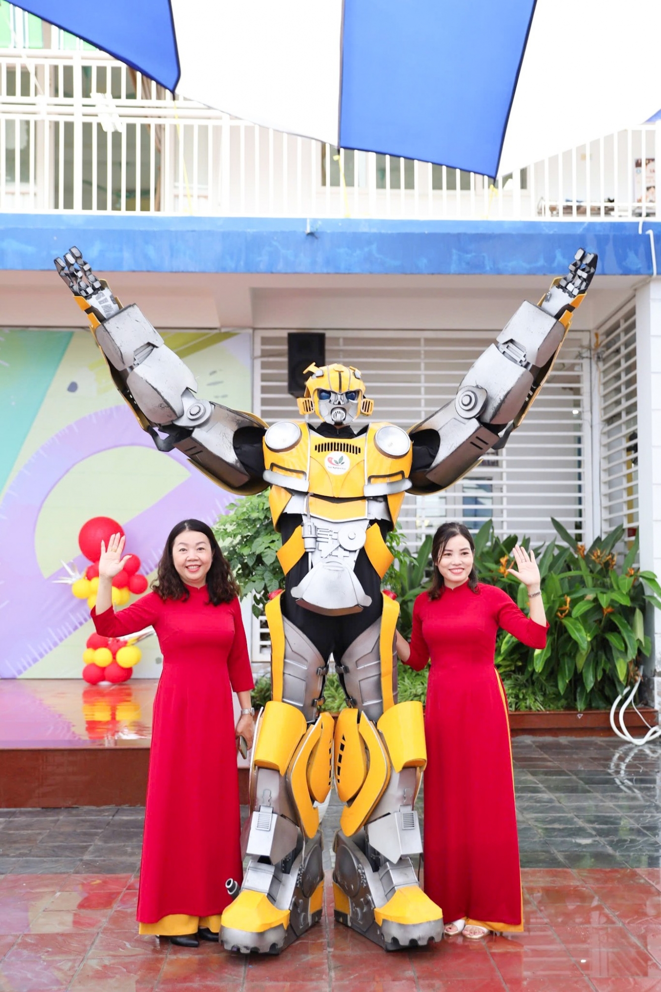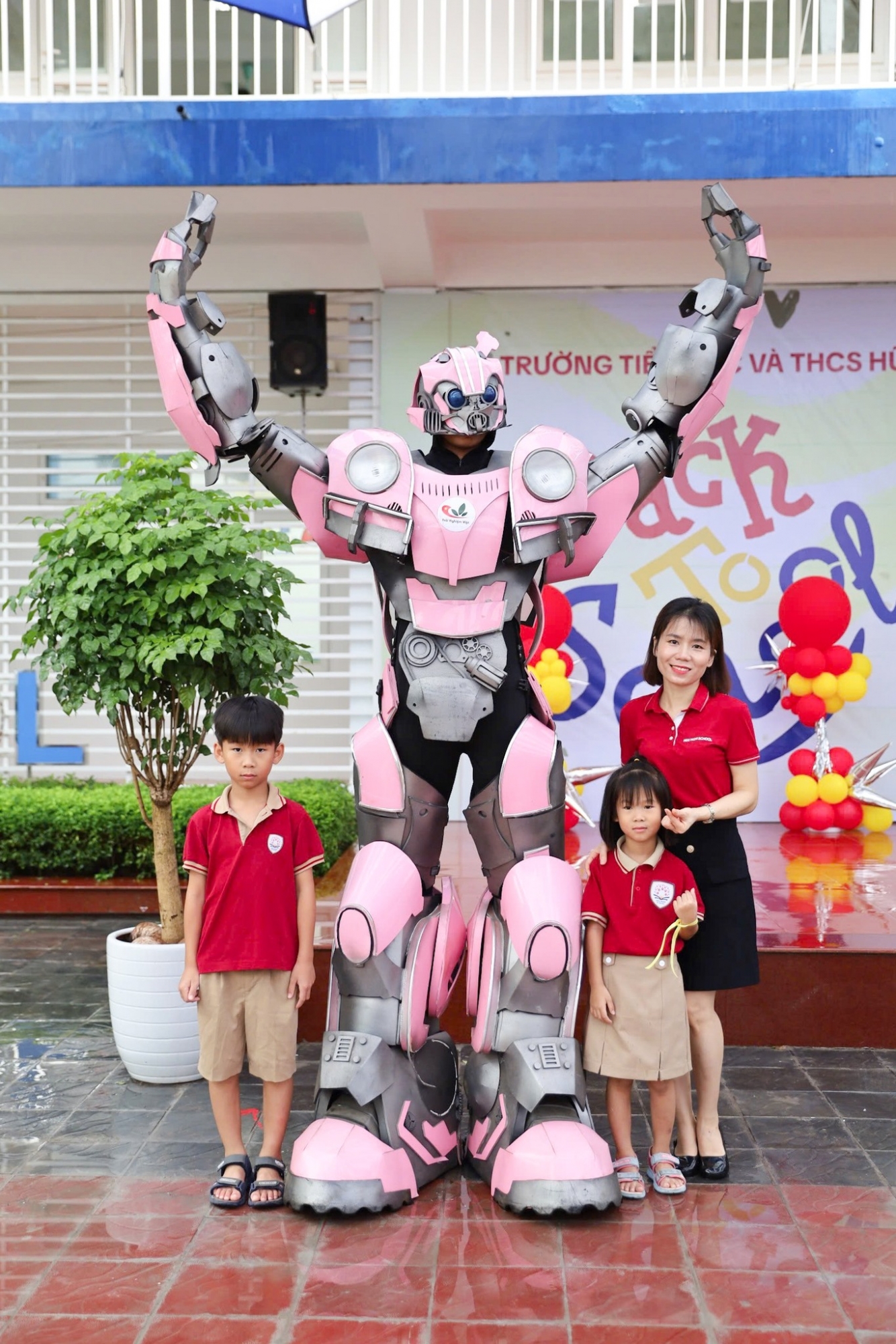 Ngay từ cổng trường, các bạn nhỏ đã được chào đón bởi những chú mascot đáng yêu. Những cái ôm, những nụ cười rạng rỡ đã xua tan mọi ngại ngùng, thay vào đó là sự hào hứng. Các em đã cùng nhau chụp những bức ảnh kỷ niệm vui nhộn, đánh dấu một khởi đầu mới đầy màu sắc.